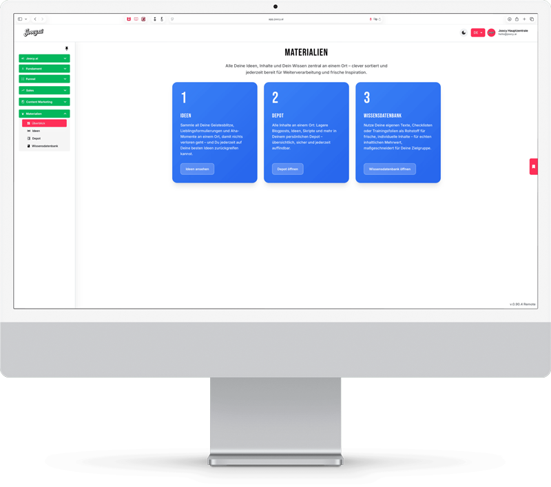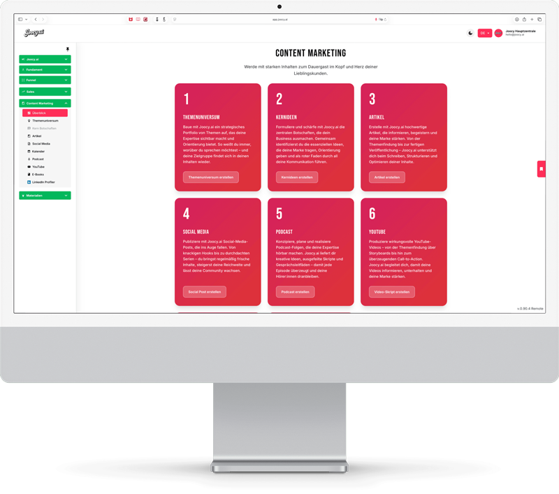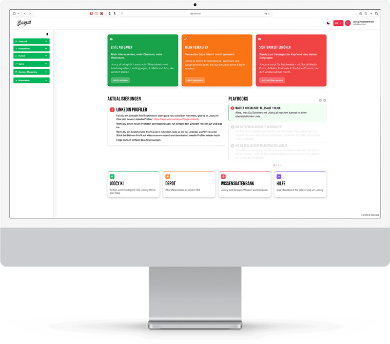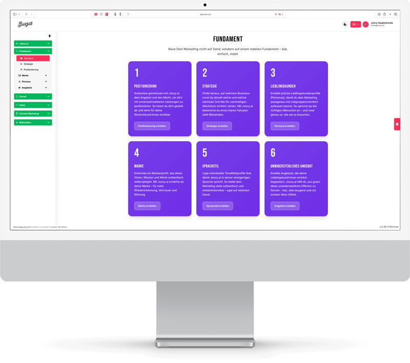 In einer Zeit zunehmender Komplexität und Geschwindigkeit gewinnen intelligente Systeme wie KI, Bots und digitale Assistenten entscheidend an Bedeutung. Sie bieten nicht nur smarte Entscheidungsgrundlagen, sondern werden zum strategischen Partner für Marketing, Vertrieb und Unternehmensentwicklung. JOOCY verkörpert genau diesen Ansatz: Als digitaler Assistent, der auf tiefgreifendem Verständnis bewährter Business-Prinzipien basiert, unterstützt JOOCY Anwender dabei, unternehmerische Herausforderungen effizient und zielgerichtet zu meistern. In ihm bündeln sich aktuell 90 Jahre geballte Erfahrung aus Marketing, Vertrieb und Geschäftsentwicklung – ergänzt durch Best Practices und moderne Managementmethoden.