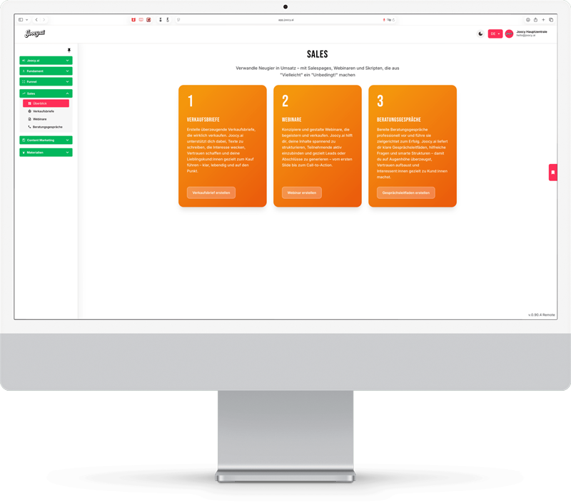 Erstelle überzeugende Verkaufsbriefe, die wirklich verkaufen. Joocy unterstützt dich dabei, Texte zu schreiben, die Interesse wecken, Vertrauen schaffen und deine Lieblingskunden gezielt zum Kauf führen – klar, lebendig und auf den Punkt.